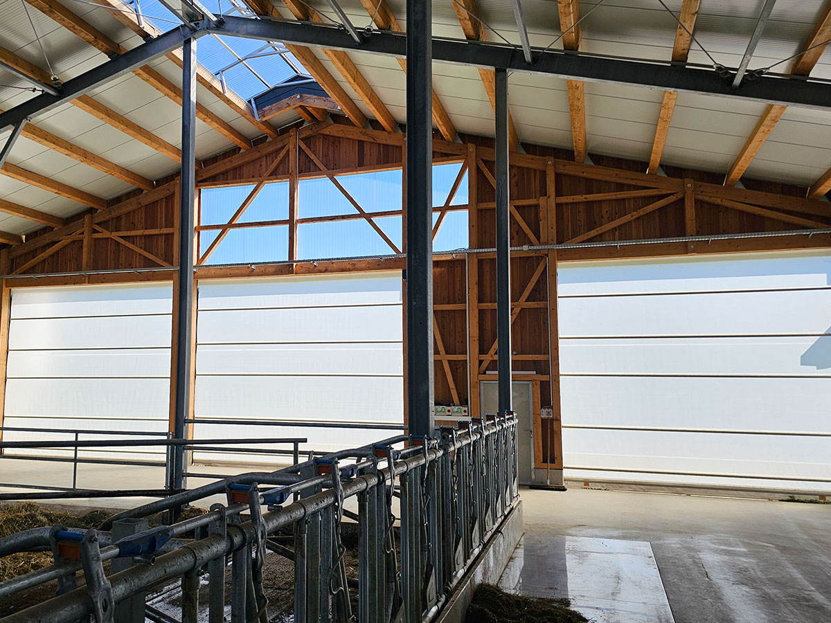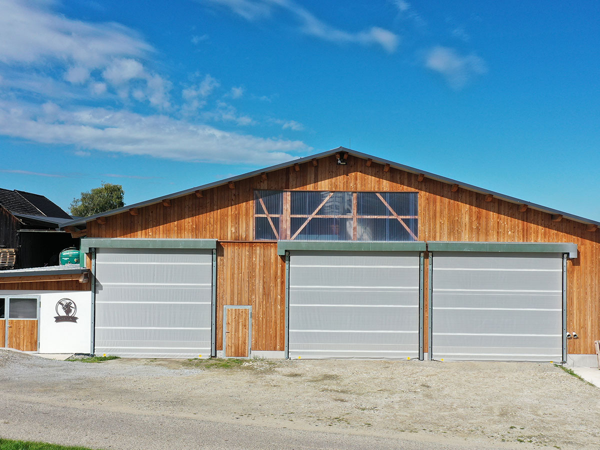 - Niedrige Öffnungs- und Schließgeschwindigkeit; für niedrig frequentierte Ein u. Ausfahrten (Entmistung, Zugang zum Laufhof)