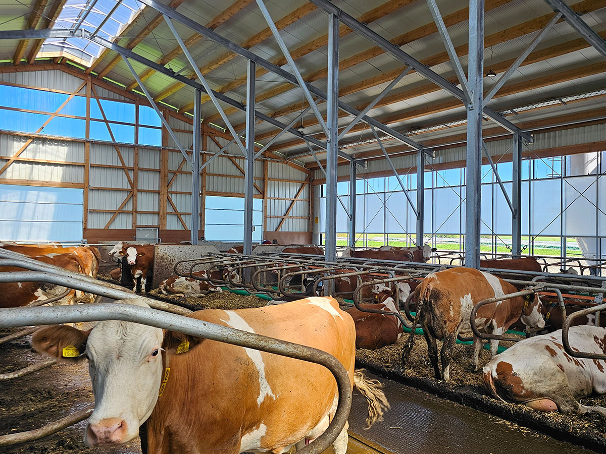 Die Entscheidung für einen Neubau war schnell getroffen – und von Anfang an stand fest: Der neue Stall soll vor allem den Kühen mehr Bewegungsfreiheit und Wohlbefinden bieten. Heute finden dort 63 Milchkühe Platz, die sich frei bewegen, frische Luft genießen und in einer modernen Umgebung gehalten werden.